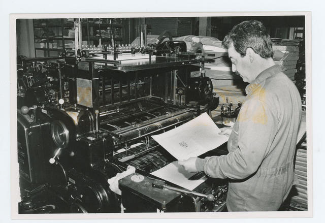 Unos obreros trabajando en una imprenta antigua