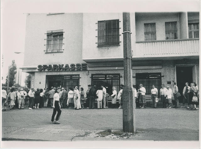 Alemanes del Este cambiando marcos DM. - Archivo Gráfico de Carta de España