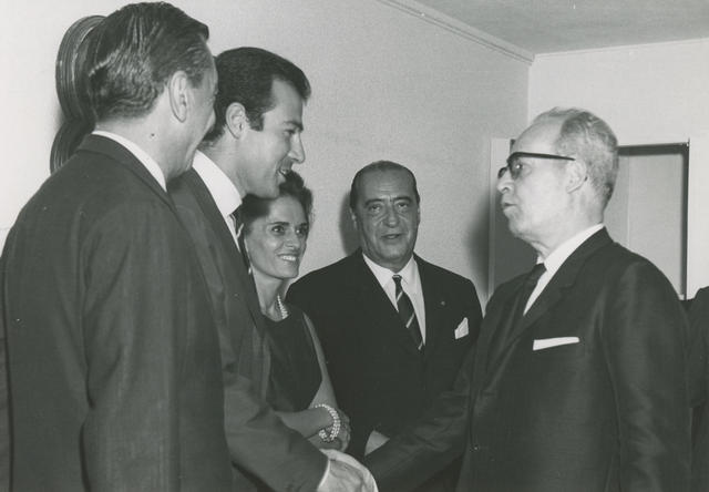 Instantánea del duque de Cádiz, Alfonso de Borbón, en su visita al Centro Asturiano de México. Le acompañaban Aurelio González presidente del Centro, Juan del Castillo y Mariano Castrillo. Publicada número 110
