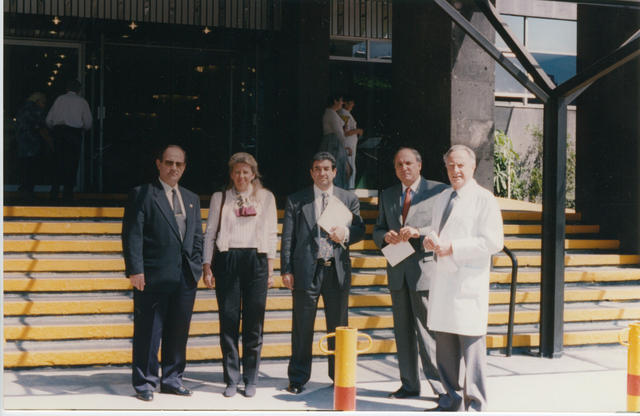 Ángeles Muñoz Uriol en la entrada de un Centro Español.