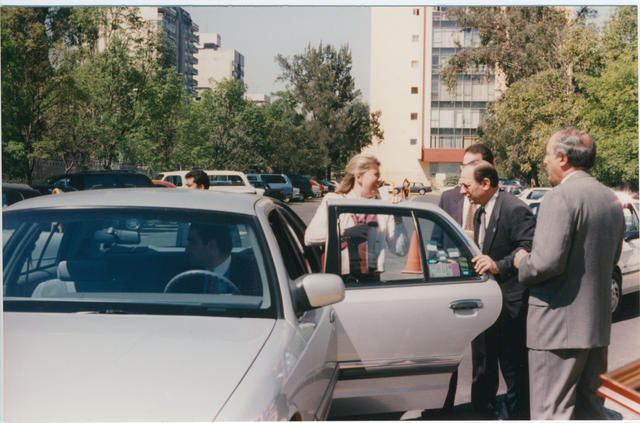 Ángeles Muñoz Uriol saliendo del coche para ir a una reunión.