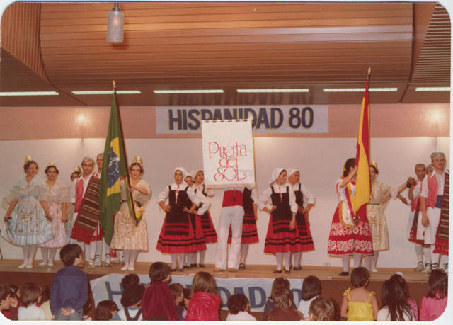 La presentación del grupo "Puerta del Sol" antes del espectáculo de la fiesta La Hispanidad en la ciudad de Mogidas Cruzes, Sao Paulo