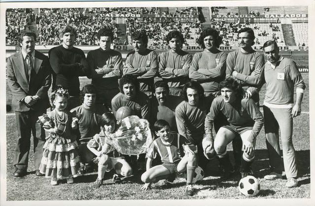 Los colores nacionales del fítbol español, con equipos generosamente obsequiados por el Instituto Español de Emigración, son los que lucen los componentes del Central Español F.C.