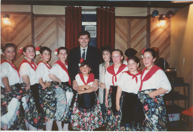 El Presidente del Senado Español Juan José Laborda con el grupo de danzas del Club Español de Sydney