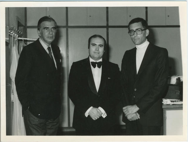 El Cónsul General conversa con los intérpretes, Carmelo Martínez y Josep M. Mas