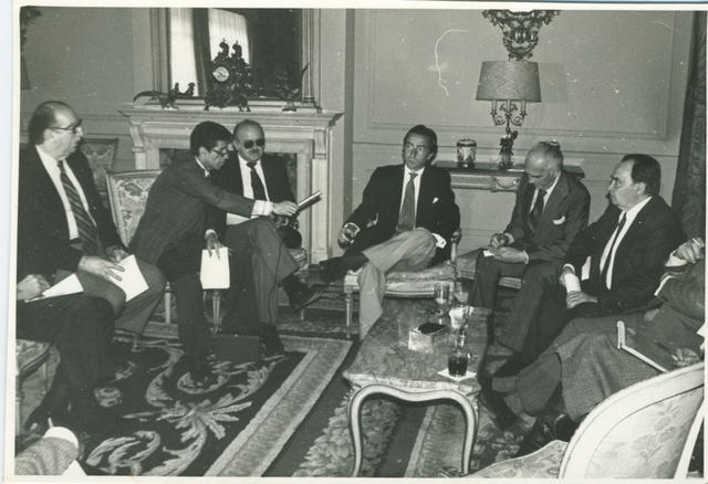 Conferencia de prensa en la que el Consejero Cultural de la Embajada Sr. Dezcallar dio a conocer las Bases del Concurso de Pintura y Escultura