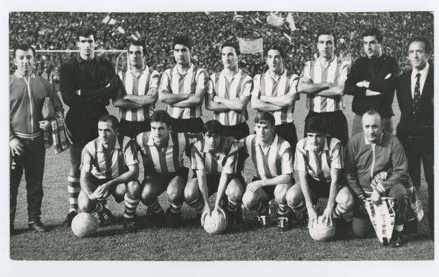 Posado para la prensa del equipo del Atlético de Bilbao en la final de la Copa del Generalísimo