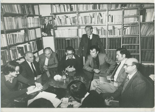 Dirigentes de la Federación de Asociaciones de Emigrantes Españoles en Francia, Asociación de Padres de Familia de Emigrantes Españoles en Francia y FECE en rueda del prensa con el Ministro de Trabajo - Archivo Gráfico de Carta de España