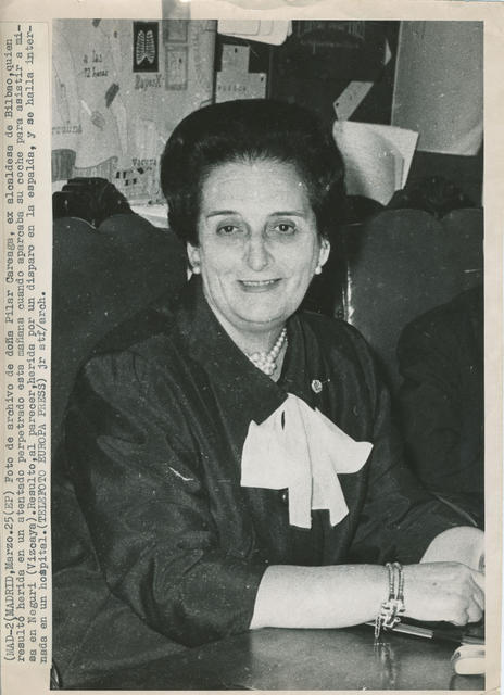 Foto de archivo de doña Pilar Careaga, ex alcaldesa de Bilbao, quien resultó herida en un atentado perpetrado esta mañana cuando aparcaba su cche para asistir a misa en Neguri (Vizcaya). Resultó, al parecer, herida por un disparo en la espalda y se halla internada en un hospital
