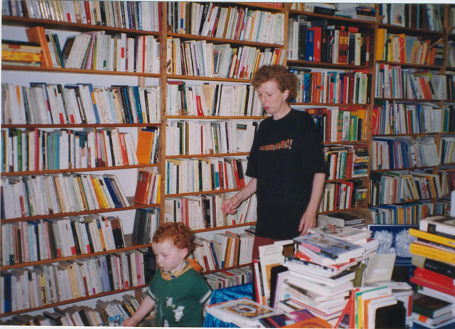 Dueña de una libreria con su hijo. - Archivo Gráfico de Carta de España