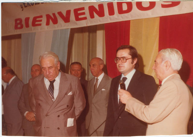 D. Alfredo A. Esperon, Presidente de la Asocicación Gallega de Beneficencia y Mutualidad junto al Consul de España don Carlos Gómez Múgica en el momento en que se dirige a los asistentes.