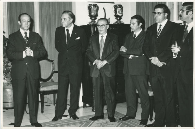 El Embajador de España Sr, Fernández-Shaw ofreció un vino en honor de las nuevas Juntas Directivas de las entidades hispánicas en Paraguay. En la foto: Dr. Manuel Peña Villamil, Presidente del Instituto Paraguayo de Cultura Hispánica; D. Luis Fontclara, Presidente de la Sociedad Española de Socorros Mutuos; D. Emilio Aparici, Presidente del Centre Catalá, y D. Alberto Corchón, Vicepresidente de la Casa de España