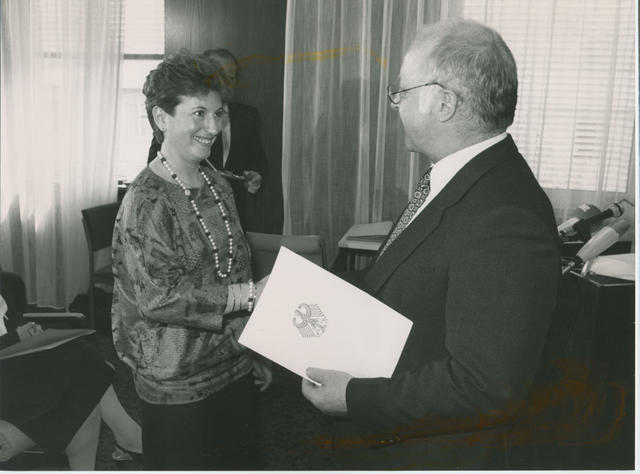 Ministro Federal Alemán de Trabajo Norbert Blüm en el acto de entrega en la Bundesverdiensthreuz a la santanderina María García