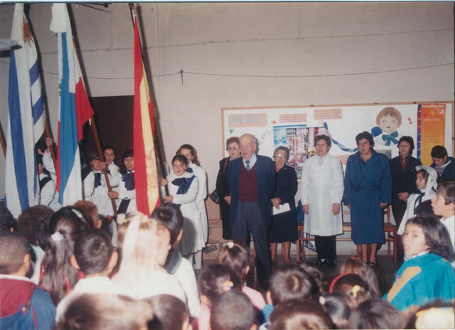 Entrega de libros donados por Libros para el mundo. De izquierda a derecha: