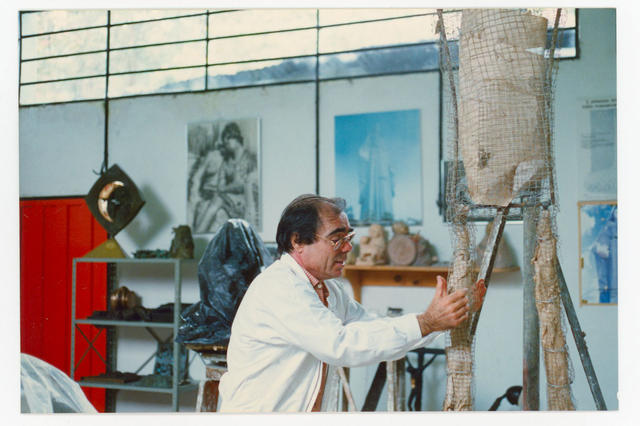 El escultor español, Manuel de la Fuente, en su taller de Venezuela