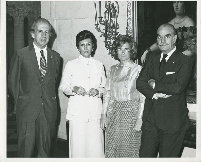 Parejas posando en un salón.