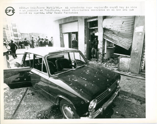 El artefacto cuya explosión costó la vida a un policía en Galdácano causó importantes destrozos en el bar del que salió el agente