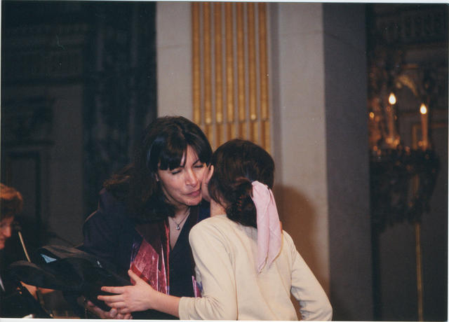 Niña saludando a una mujer.