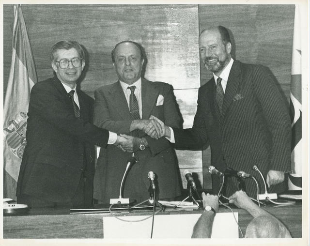 Firma de los pactos de Coalición Popular. - Archivo Gráfico de Carta de España