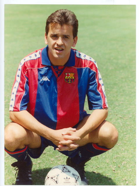 El ex jugador del Tenerife, Quique Esiebaranz, durante su presentación como nuevo jugador del Barcelona FC