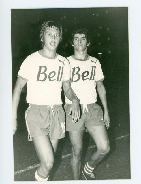 Dos jugadores de fútbol saliendo del campo tras un partido