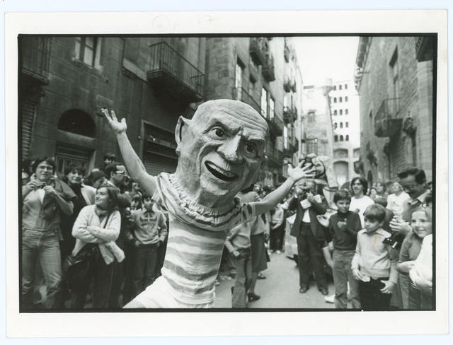 Un momento tradicional de la cabalgata de gigantes y cabezudos en Barcelona, que en esa ocasión, homenajeaban al pintor Pablo Picasso