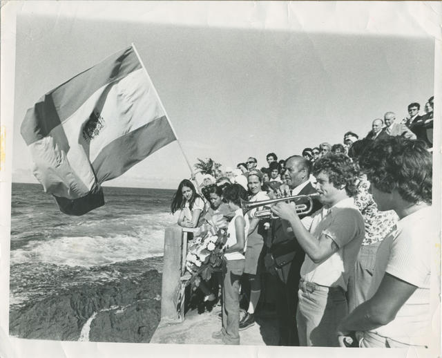 Hombre tocando la trompeta en un Homenaje. - Archivo Gráfico de Carta de España