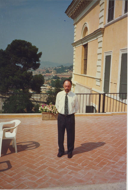 Jorge Lozano, Director de la Academia Española de Historia, Arqueología y Bellas Artes de Roma en la terraza del Centro. 1991