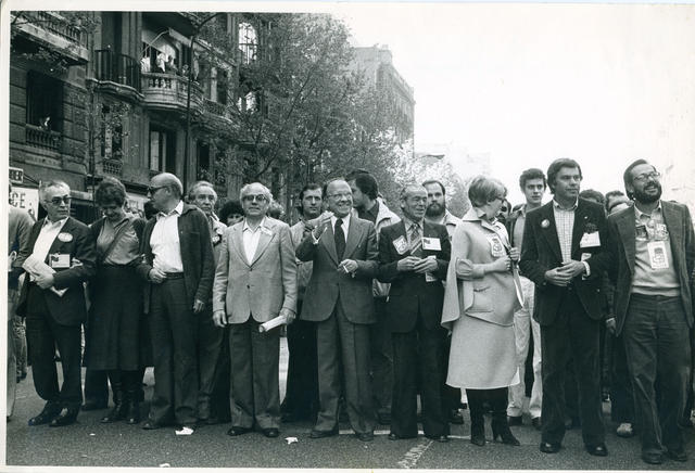 Manifestación del Primero de Mayo a la que acudieron, entre otros, Santiago Carrillo y Felipe González