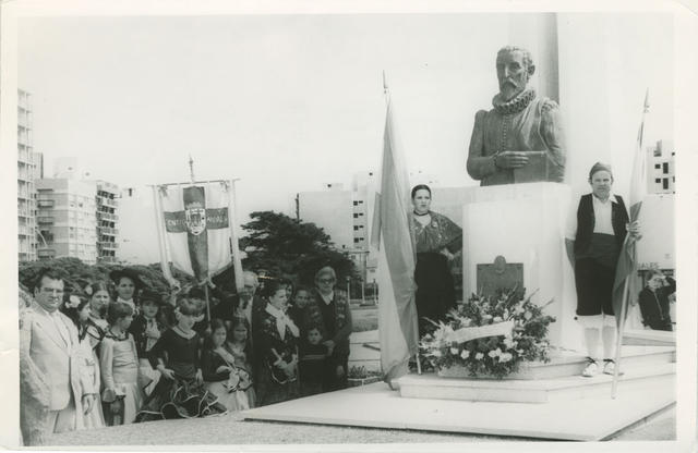 Ofrenda floral al monumento de Miguel de Cervantes