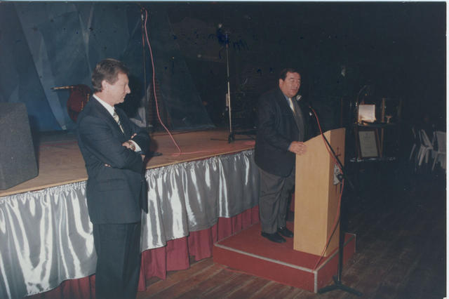 El Presidente del Centro Gallego de Montevideo y el Cónsul haciendo uso de la palabra