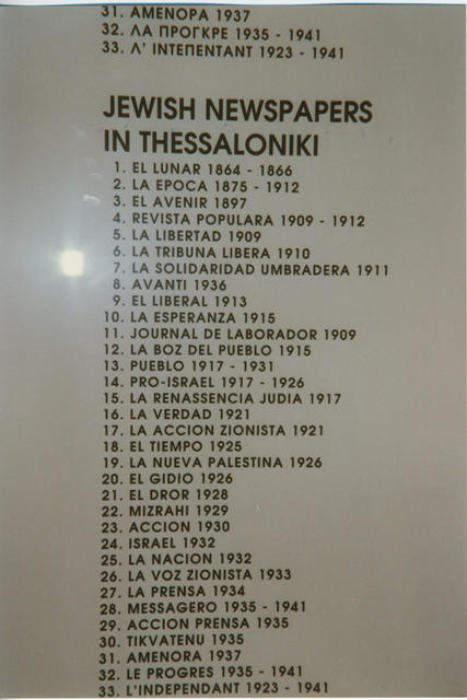 Relación de periódicos judios en Tesalónika - Archivo Gráfico de Carta de España