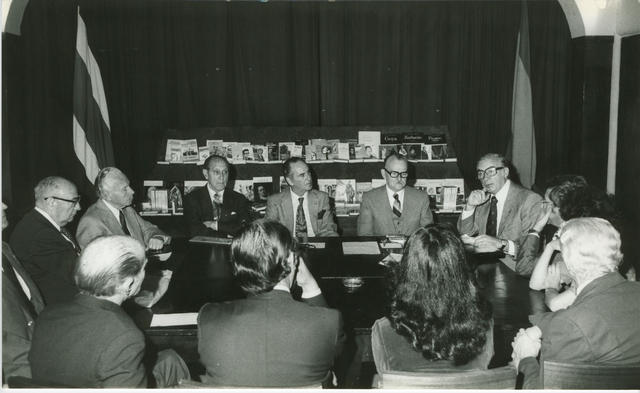Reunión de la Junta Directiva del Instituto Costarricense de Cultura Hispánica presidida por el Embajador de España en Costa Rica don Manuel de Aguilar junto con el Vicepresidente del Instituto don Arturo Agüero