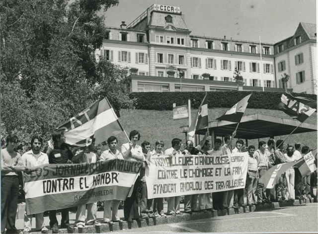 Trabajadores andaluces expresan sus reivindicaciones con motivo del viaje de don Juan Carlos. Junio 1979