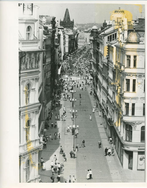 El sueño de muchos amantes de Praga se ha hecho realidad, el punto de mayor tráfico en el centro de la ciudad se ha convertido en zona peatonal. El cambio se produjo con la introducción de la tercera línea del Metro de Praga en Noviembre del último año, cuando todos los transportes municipales de pasajeros se hicieron subterráneos en esta parte de la ciudad. Cruce entre la calle October 28th con la calle Na Príkope.