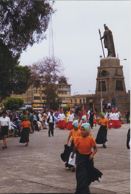 Un grupo de danza bailando en la Plaza. - Archivo Gráfico de Carta de España