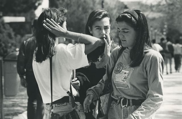 Grupo de jóvenes charla en la Ciudad Universitaria de Madrid