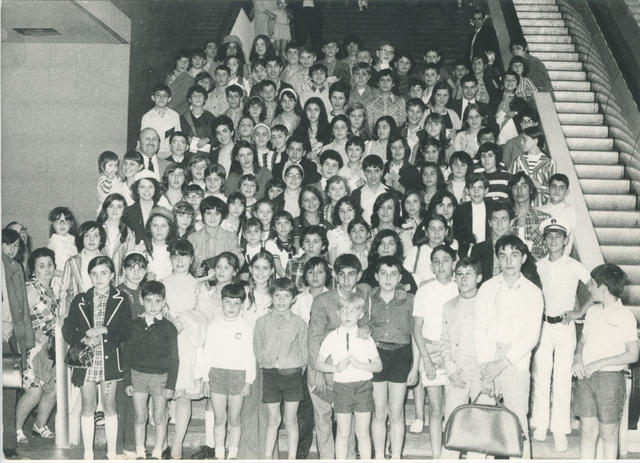 Fotografía de un grupo de niños con motivo de una visita escolar. Publicada