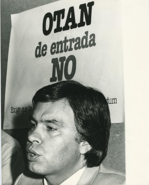 El Secretario General del Partido Socialista Obrero Español, Felipe González, durante su intevención en una rueda de prensa.