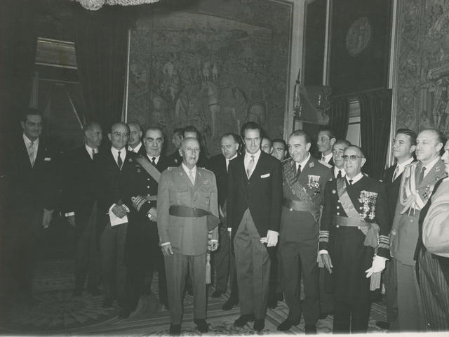 Instantánea de Francisco Franco junto con otros militares en una recepción oficial