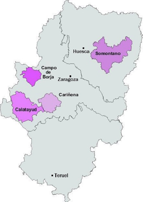 Aragón tiene tres provincias: Zaragoza, Huesca y Teruel y cuatro denominaciones de origen vinícolas: Cariñena, Calatayud, Somontano y Campo de Borja