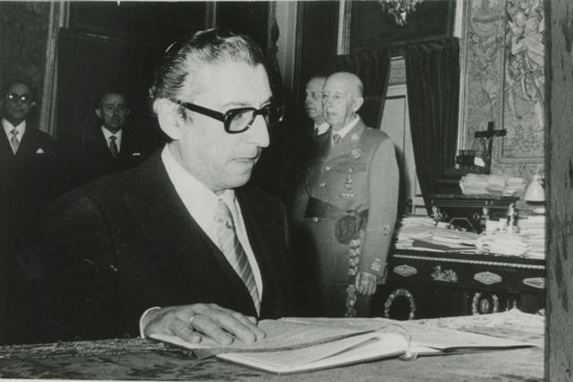 Retrato de Barrera de Irimo jurando su cargo ante Franco