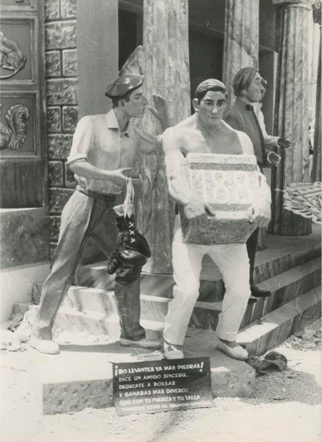 Dos de los muñecos de la hoguera de la Ciudad de Asis del barrio de la Florida