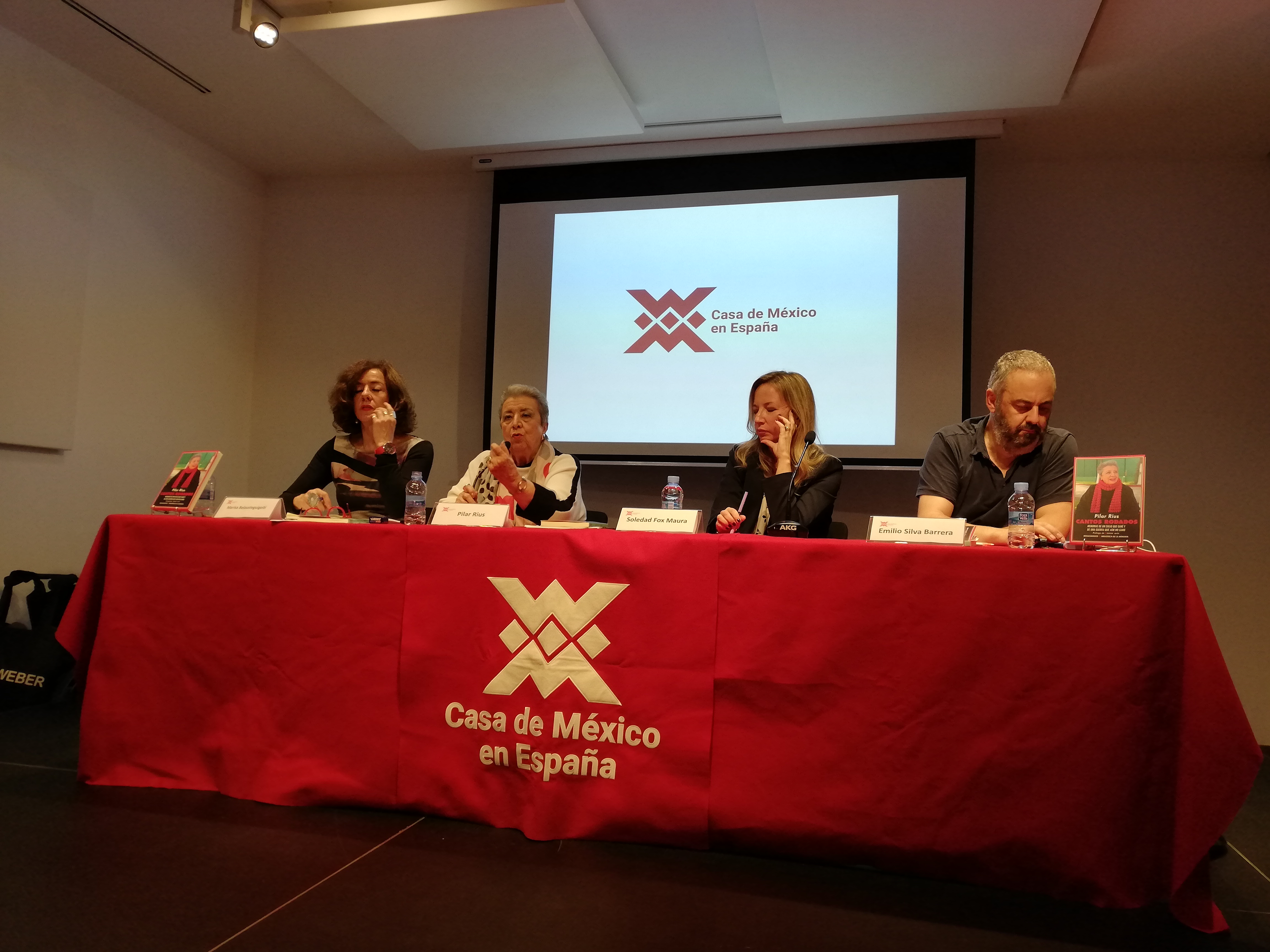 La autora acompañada en la presentación por Emilio Silva Barrera, Soledad Fox Maura y su hija Marisa Belausteguigoitia.