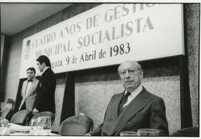 Enrique Tierno Galván celebró junto a más de 1200 cargos del PSOE el cuarto aniversario de los ayuntamientos democráticos.