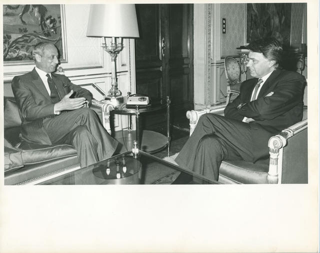 El Presidente del Gobierno Felipe González recibe al Ministro de Asuntos Exteriores de Marruecos, Abdelatif Filali, en el Palacio de la Moncloa