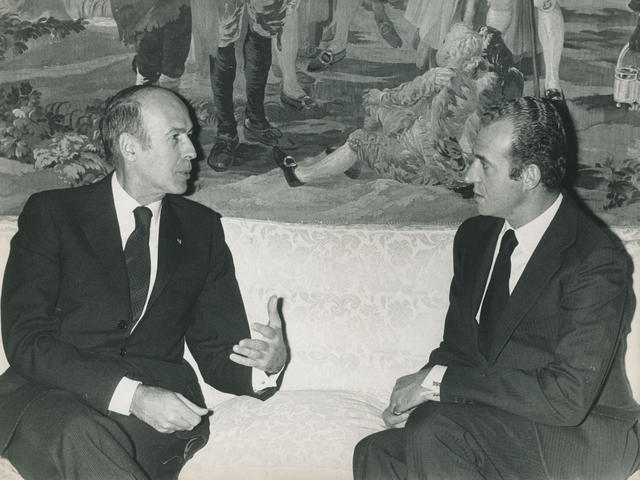 El Rey don Juan Carlos charla en el Palacio de la Zarzuela con el Presidente francés Valery Giscard d'Estain