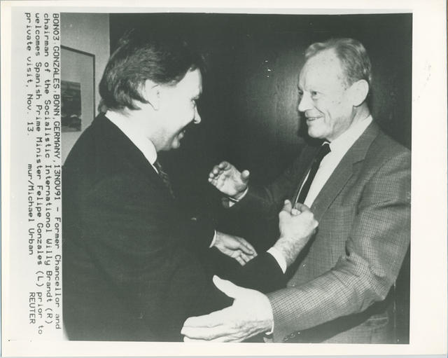 El Presidente del Gobierno, Felipe González, con el Presidente de la Internacional Socialista, Willy Brandt