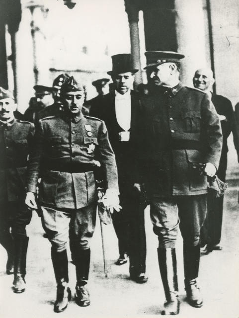 Instantánea del Jefe del Estado, Francisco Franco con el General Queipo de Llano en Sevilla durante la Guerra Civil