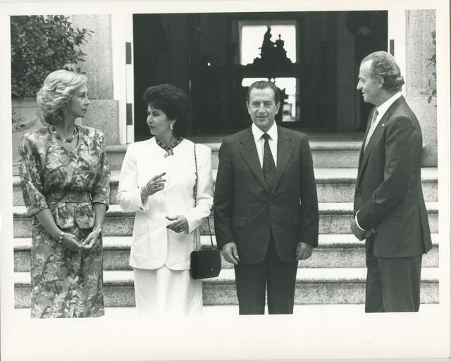 Los Reyes de España, Juan Carlos I y Doña Sofía, con el Presidente de Ecuador, Rodrigo Borja, y su esposa, en el Palacio de la Zarzuela